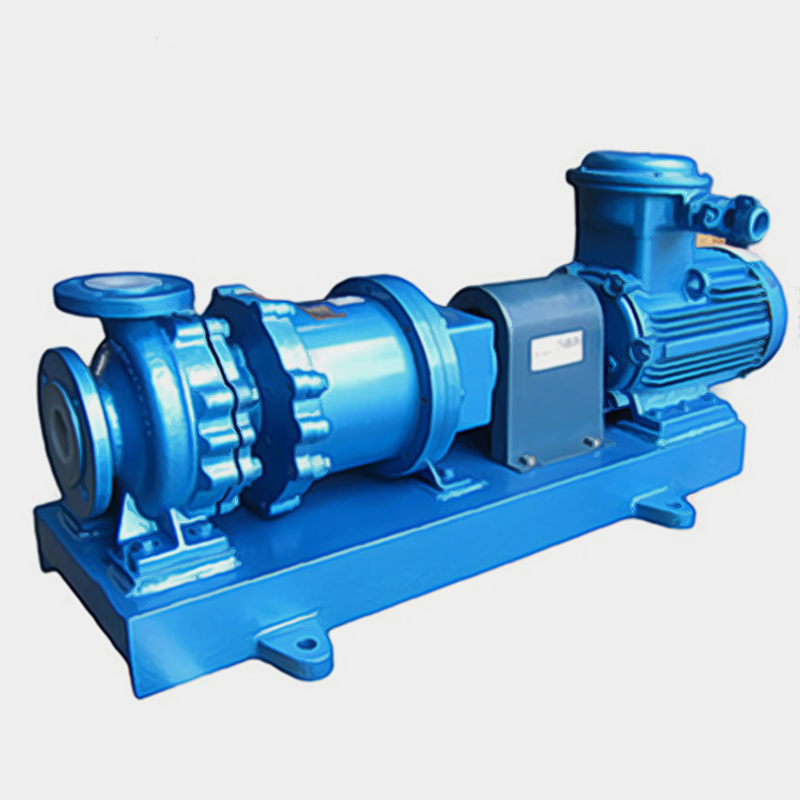 SCGF無泄漏襯氟高溫磁力泵(簡稱:襯氟磁力泵)是應用現代磁力學原理,利用永磁體的磁力傳動實現扭矩的無接觸傳遞的一種新型泵,也就是電機帶動外轉子(即外磁鋼)總成旋轉時,通過磁場的作用磁力線穿過隔離套帶動內轉子(即內磁鋼)總成和葉輪同步旋轉,過流部件全部采用氟塑料制造,可輸送任意濃(強)度的酸、堿、氧化劑等腐蝕性介質,隔離套采用特殊材料制造具有高強度的力學性能,消除了磁力泵存在的磁渦流現象,由于介質封閉在靜止的隔離套內,從而達到無泄漏抽送介質的目的,徹底解決了機械傳動泵的軸封泄漏,而設計的全密封、無泄漏、無污染、耐強酸、高效節能的新型無泄漏耐酸泵,性能達到國際標準、可替代價格昂貴不銹鋼,特殊合金材料、進口的化工泵。